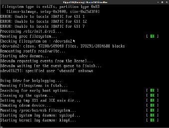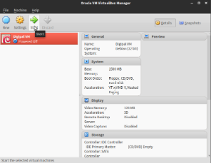 Once installed, the VM should appear in the main page. From there, you can run it by clicking the button "Start" from the menu on the top. A new window should be opened and the VM should start loading. You will be seeing a black screen for a few seconds. That's the VM loading, so do not worry about it.